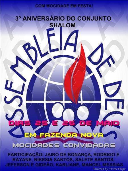 3º Aniversário do Conjunto de Mocidade Shalom em Fazenda Nova